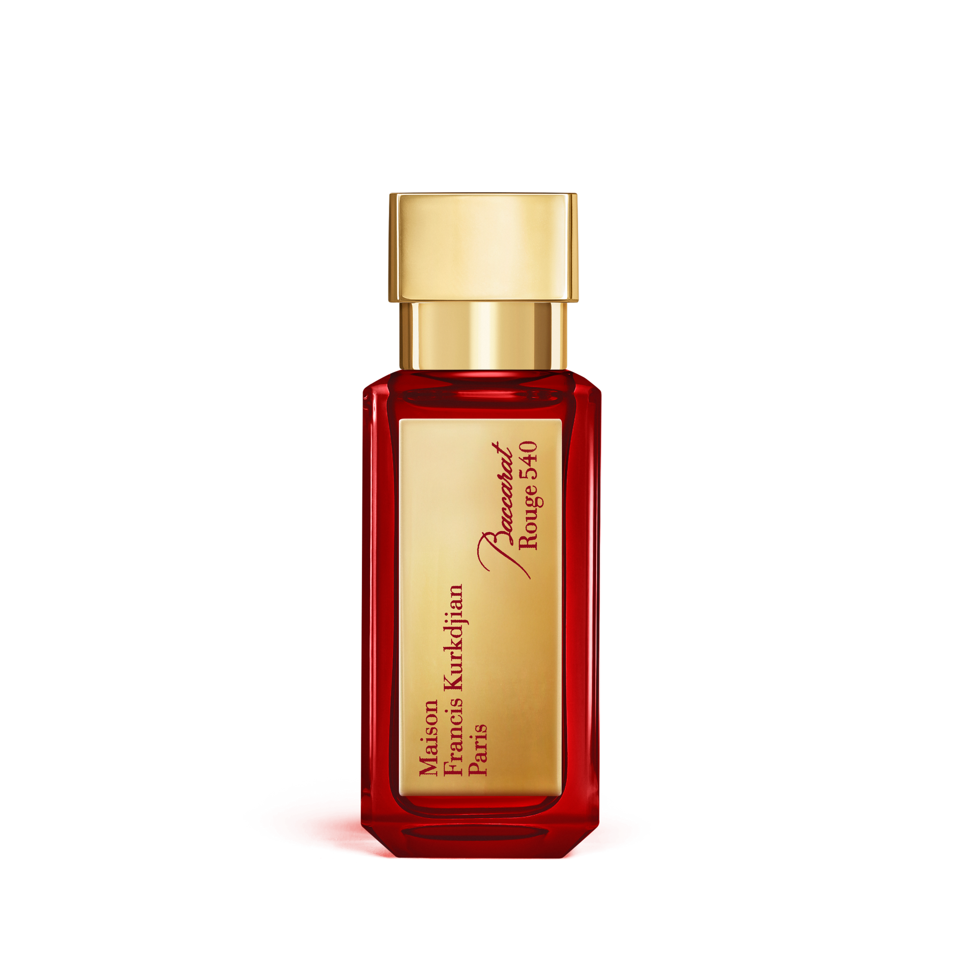 Baccarat Rouge 540 extrait de parfum intensifies the radiance of the three auras found in the eau de parfum without betraying the original inspiration. The perfumer’s mastered craft and the wisdom gained with time gave birth to this woody extrait de perfume, an ultimate accomplishment for Francis Kurkdjian. The Grandiflorum jasmine from Egypt head note gently underscores the craftsman’s voice. The hint of fire is enhanced with powdered epicurean facets of bitter almond from Morocco. Lastly, the mineral note built around ambergris is tamed with a musky and woody accord. Adding to the intensity of the extrait, the perfume bottle also plays with light. Its aesthetic dons a brilliant red robe reminiscent of Baccarat red. Baccarat Rouge 540 Maison Francis Kurkdjian extrait de parfum embodies the profusion and fusion of elements that can only be tamed by the art of the perfumer and the wisdom gained with time.