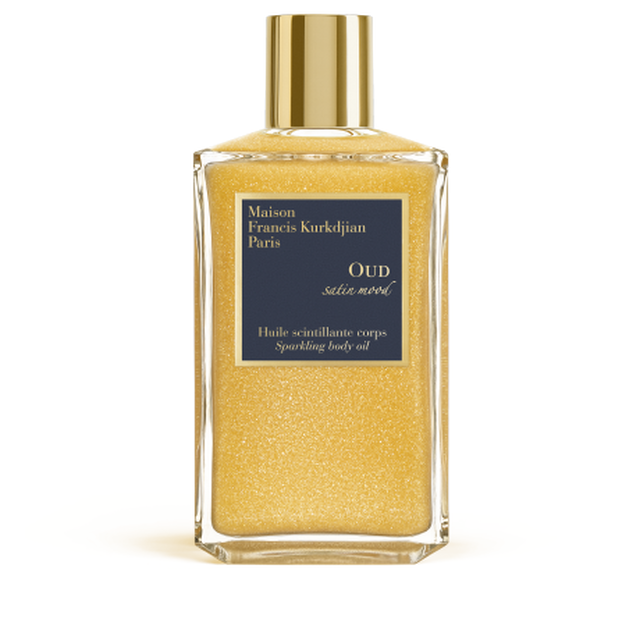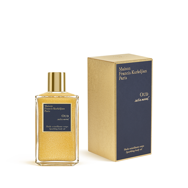 The OUD satin mood sparkling body oil extends the beauty ritual with its sensuality, beautifying the skin with a floral, amber and woody touch. Inspired by oud wood, this sparkling oil unfurls an opulent sillage, leaving the skin delicately sparkled and scented. Please shake the product before each use.